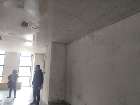 調(diào)查后發(fā)現(xiàn),墻體長(zhǎng)毛的罪魁禍?zhǔn)拙谷皇潜辉O(shè)計(jì)用來(lái)調(diào)節(jié)室內(nèi)濕度的“硅藻泥”。硅藻泥的吸水性較好,游泳館室內(nèi)濕度又常年在60%以上,導(dǎo)致硅藻泥總是處于水分過(guò)飽和狀態(tài),即墻體表面充滿(mǎn)水分。南方大部分地區(qū)空氣長(zhǎng)年濕熱,潮濕的墻面為霉菌的繁殖提供了溫床。墻體上大片的黑斑其實(shí)就是霉菌。墻面發(fā)霉若不及時(shí)處理的話,會(huì)散發(fā)霉菌孢子,對(duì)人體危害是極大的。霉菌孢子在空氣中流動(dòng),進(jìn)入人體侵入呼吸系統(tǒng)迅速繁殖。長(zhǎng)期接觸霉菌,可引發(fā)呼吸道疾病和過(guò)敏癥狀等,免疫力低的人還可能因此引起頭疼、發(fā)燒、皮膚或黏膜發(fā)炎,嚴(yán)重的會(huì)產(chǎn)生致癌物質(zhì)。